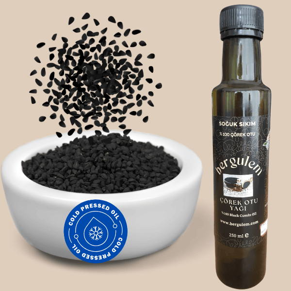 Bergulem Doğal Çörek Otu Yağı sadece Çörek Otundan Soğuk Sıkım Yöntemi ile elde eidlmiştir.
