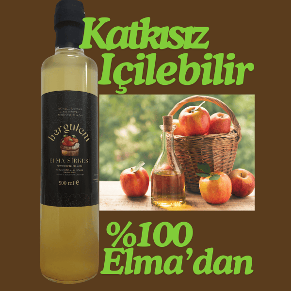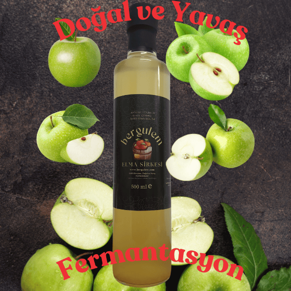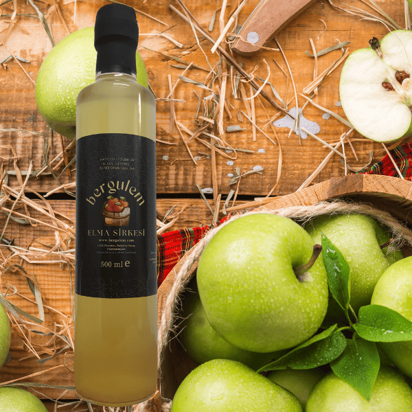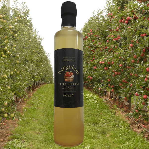 Bergulem Doğal Elma Sirkesi Granny Smith ve Pink Lady cinsi elmaların balon presde sıkılarak elde edilen %100 meyvenin kendi suyu ile , doğal ve yavaş fermantasyon yöntemi ile üretilen sağlıklı bir içecektir.