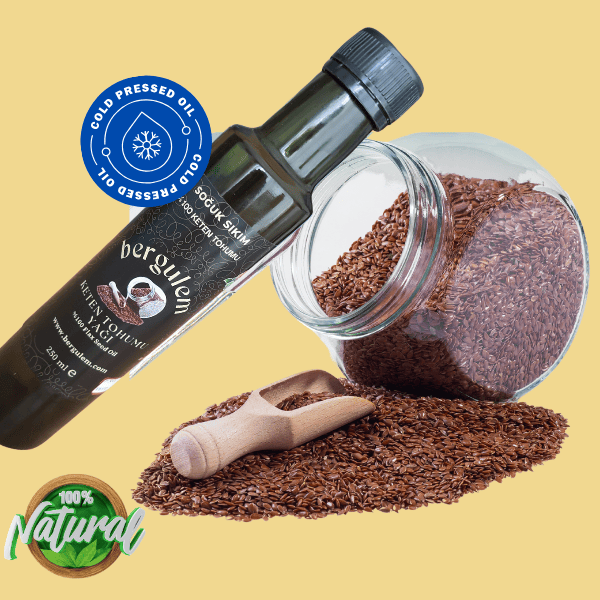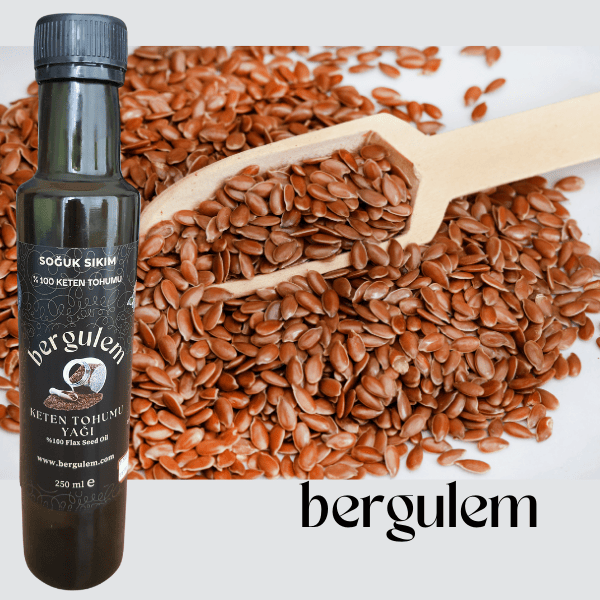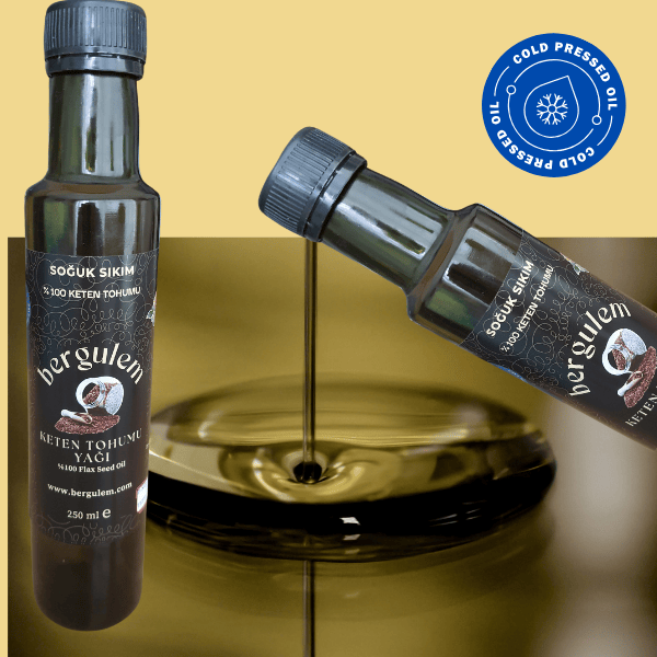 bergulem Doğal Keten Tohumu Yağı , hiç bir katkı ilave edilmeden Soğuk Sıkım Yöntemi 21-22 C de elde edilmektedir.