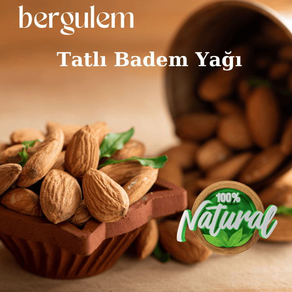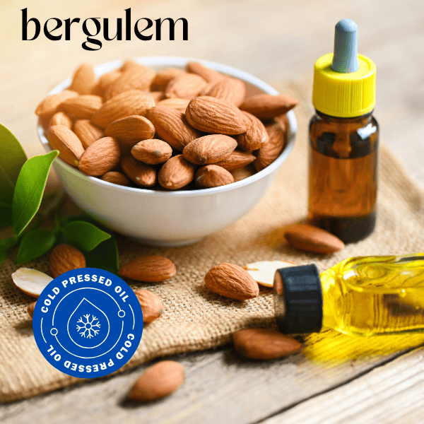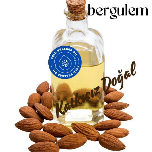 bergulem Doğal Tatlı Badem Yağı, %100 Bademden 21-22 C de Soğuk Sıkım Yöntemi ile elde edilmiştir.