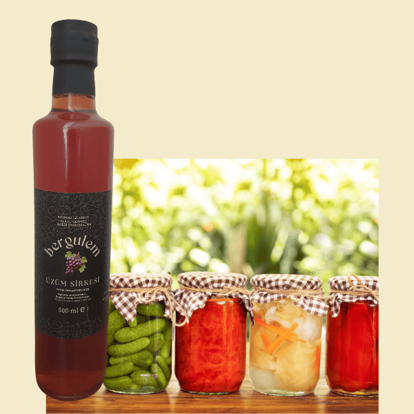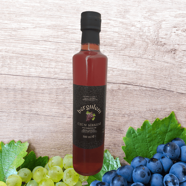 Bergulem Doğal Üzüm Sirkesi , Alfonse cinsi üzümlerden doğal ve yavaş fermantasyon ile üretilmiştir.