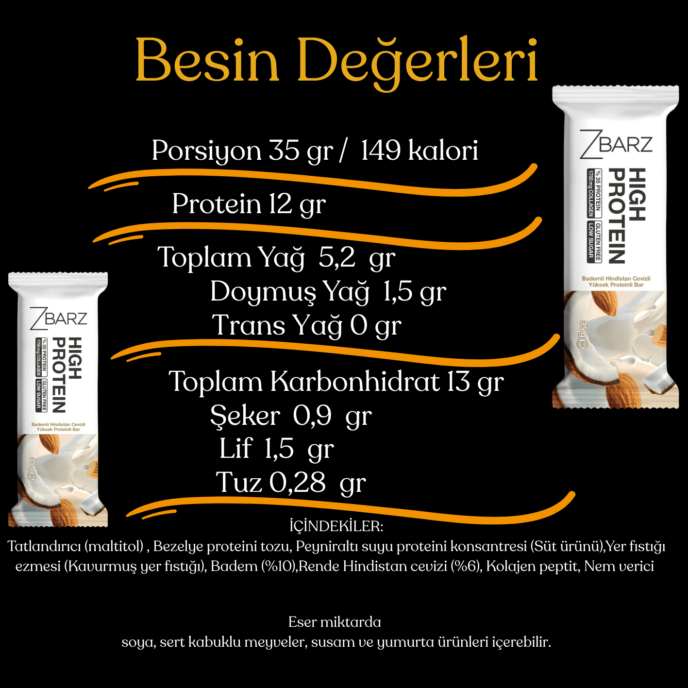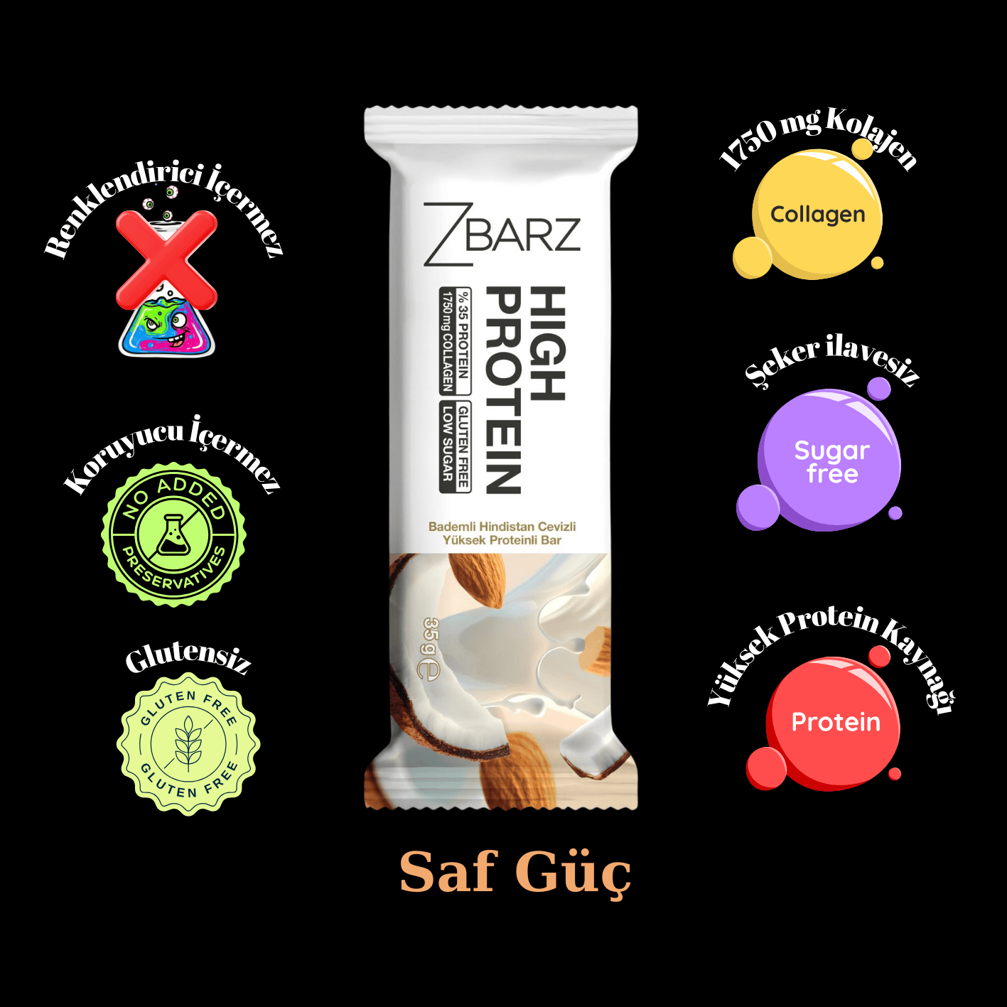 ZBARZ Bademli Hindistan Cevizli Yüksek Proteinli Bar