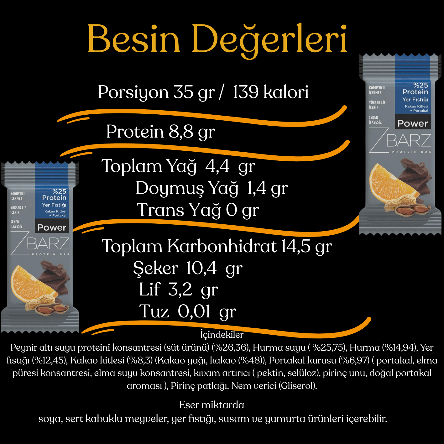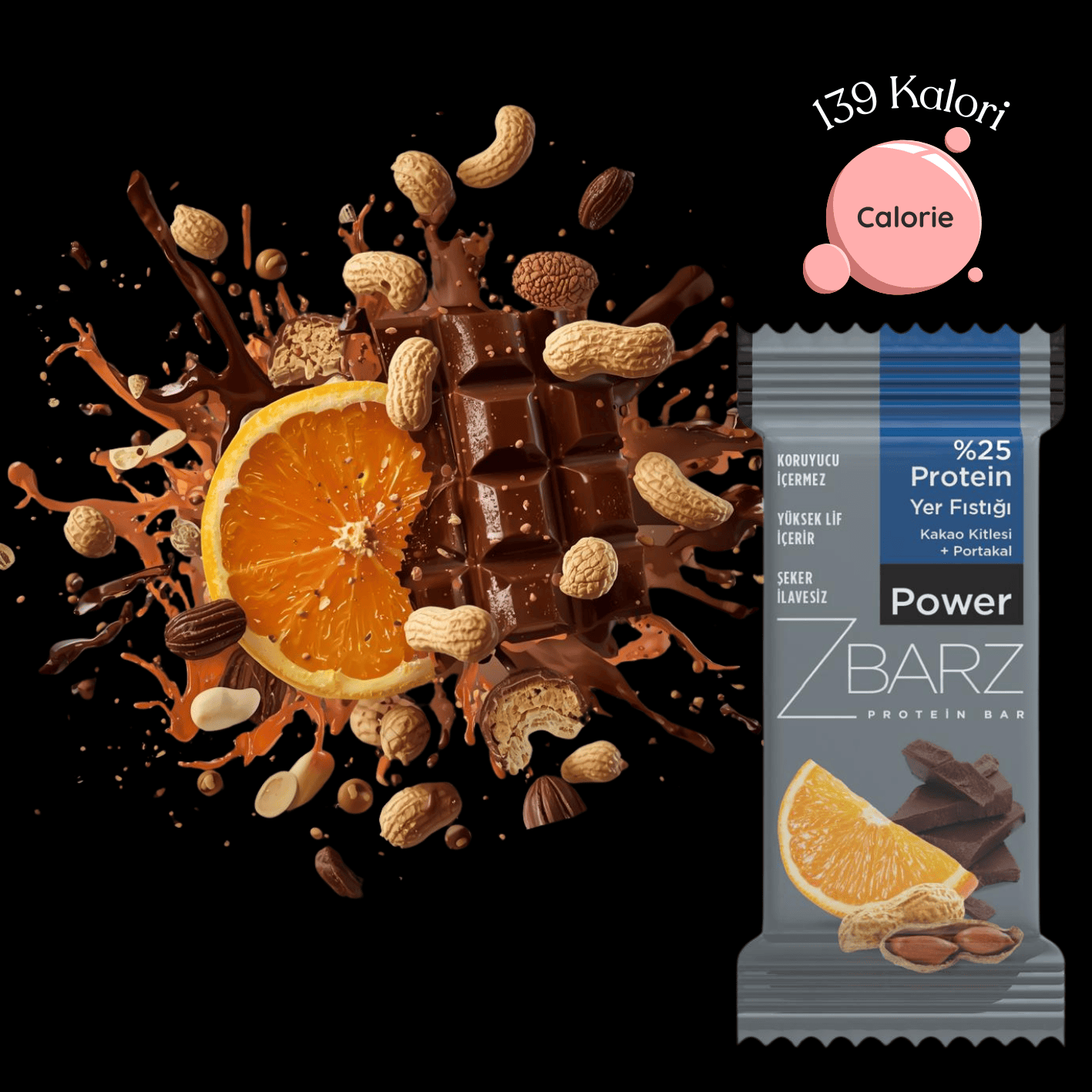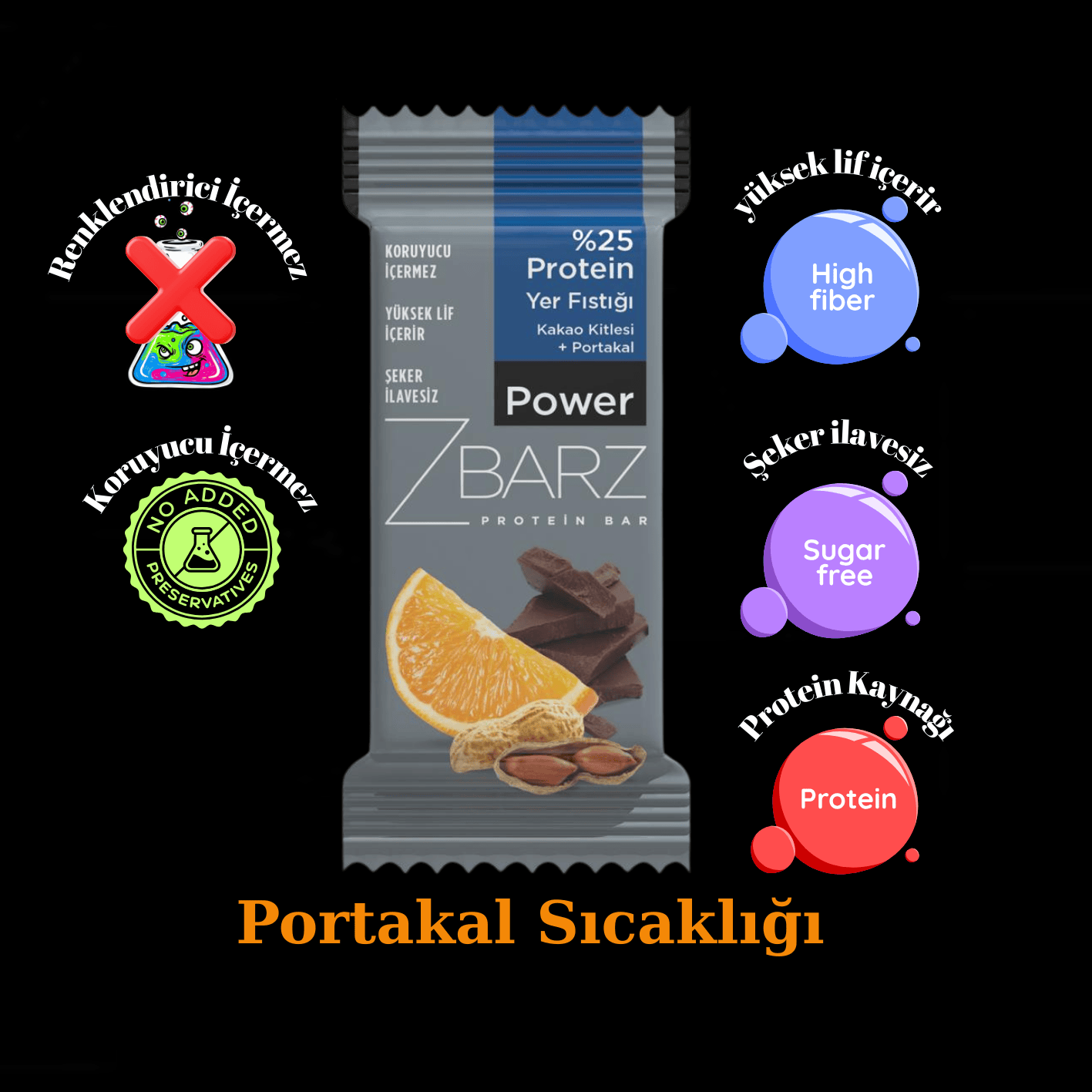 ZBARZ Power Portakal Kakao Yer Fıstıklı Protein Bar