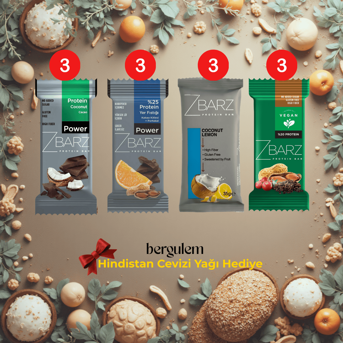 3-LİMONLU HİNDİSTAN CEVİZLİ PROTEİN BAR: 3 ADET
