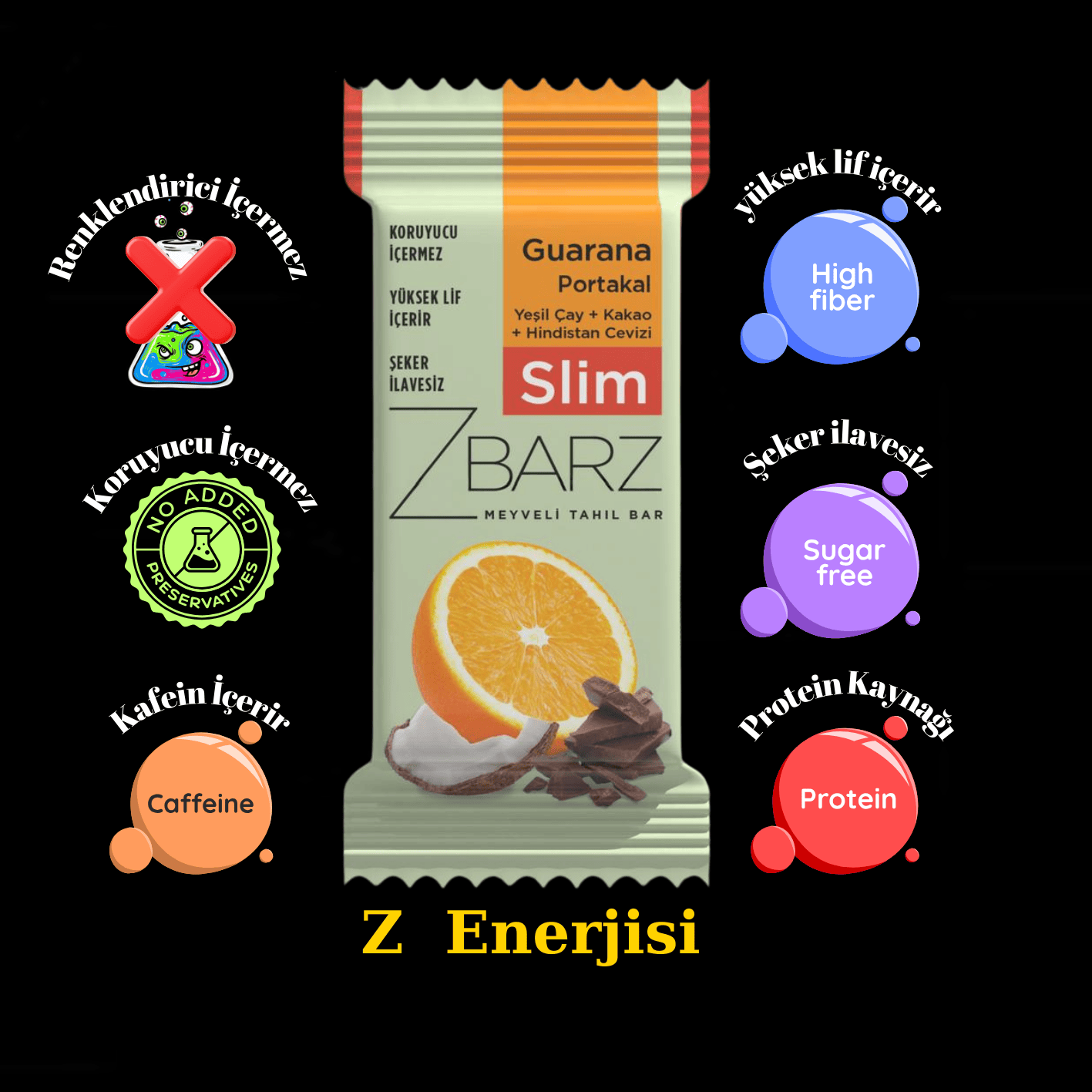 ZBARZ Slim Guarana Portakallı Fonksiyonel Meyveli Bar